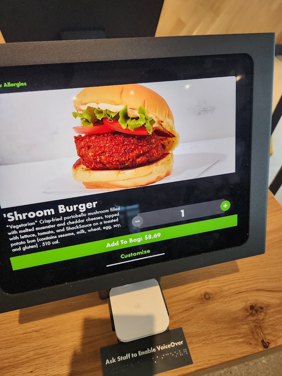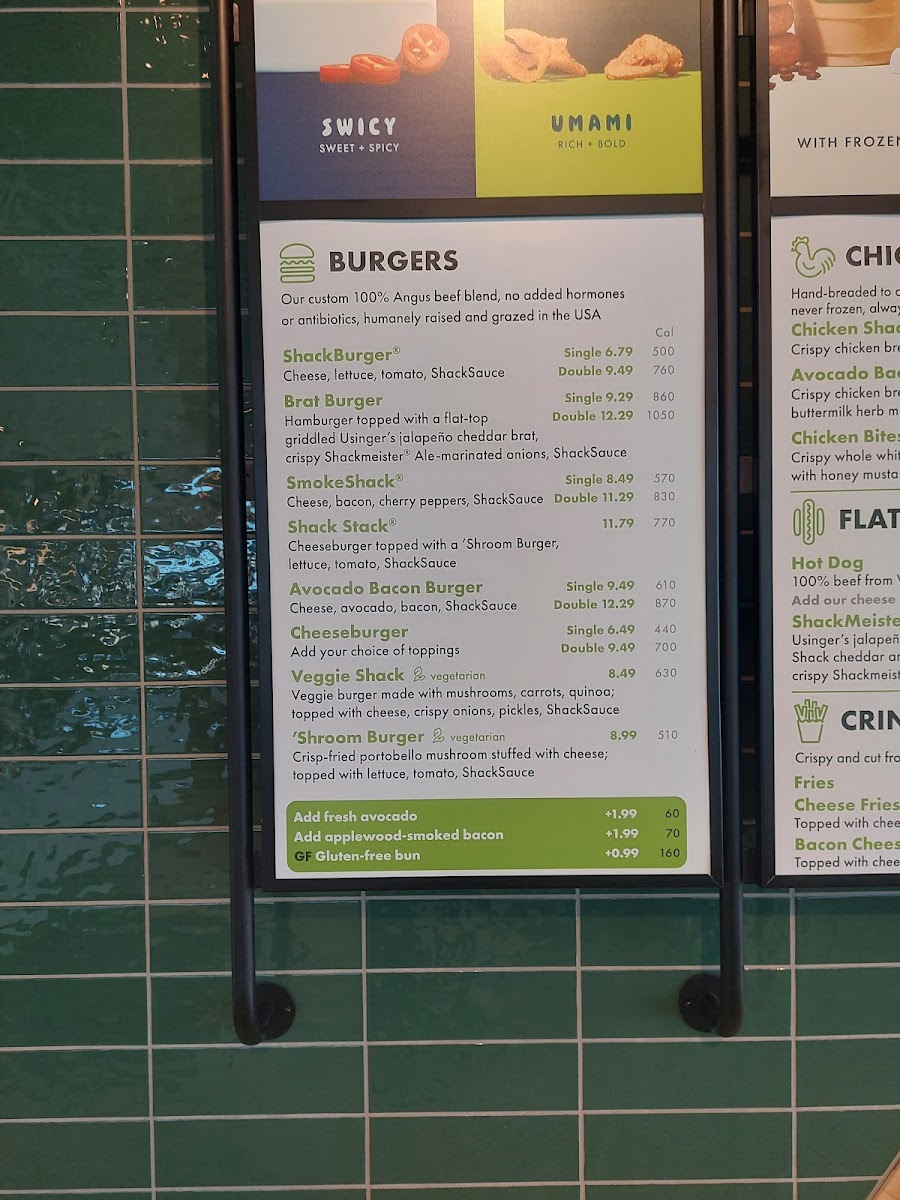 *Vegetarian* Crisp-fried portobello mushroom filled with melted muenster and cheddar cheeses, topped with lettuce, tomato, and ShackSauce on a toasted potato bun (contains sesame, milk, wheat, egg, soy, and gluten)
